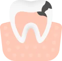 Как выглядит: Более глубокие кариозные полости (углубления], в которые попадает пища.