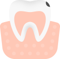 Смещаясь, зуб начинает притираться к соседним, повреждая эмаль — возникает кариес:
